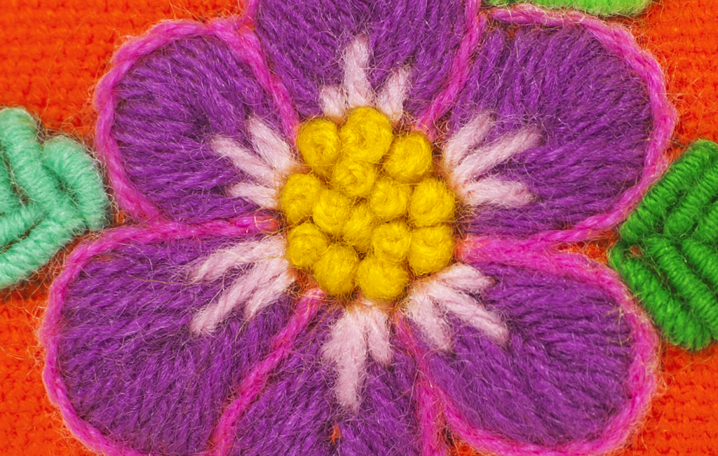 Coqueto monedero, práctico de llevar decorado con bordado floral de colores intensos.