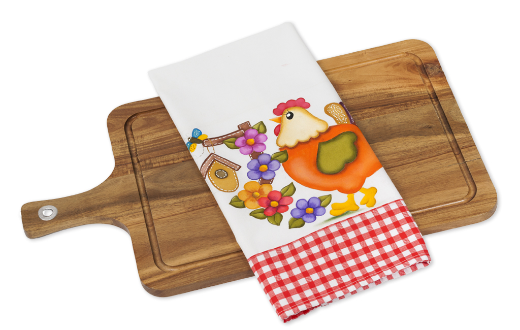 Coqueta Gallinita como detalle de secador decorativo. Ideal para darle alegría a tu cocina o como un lindo regalo.