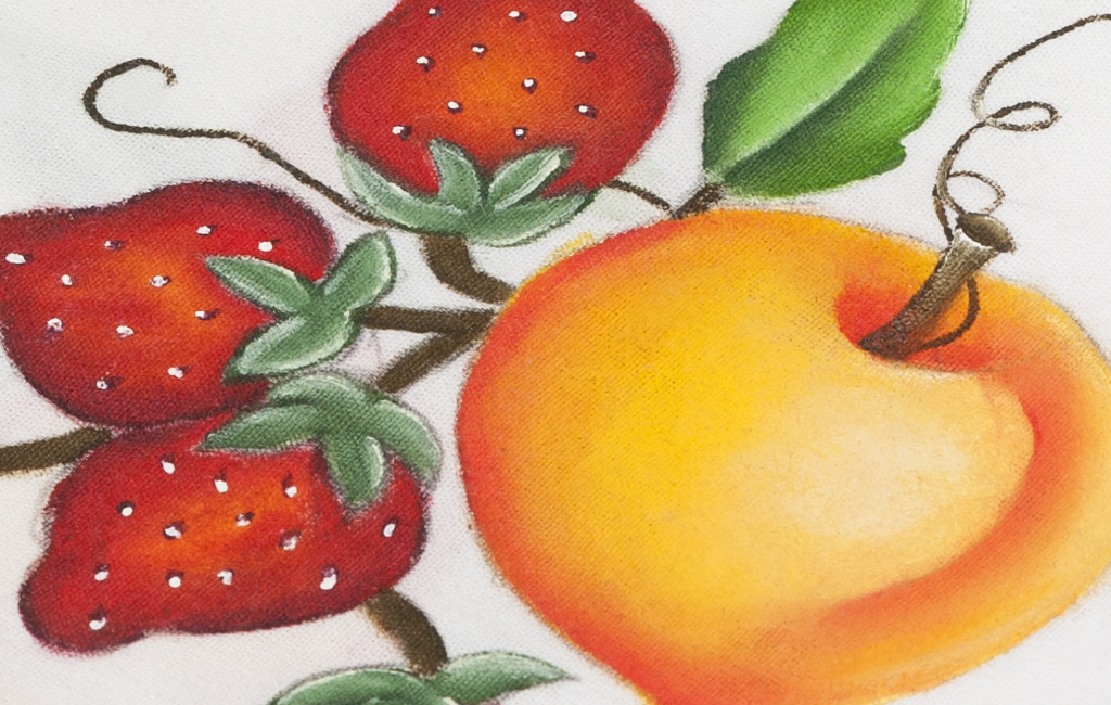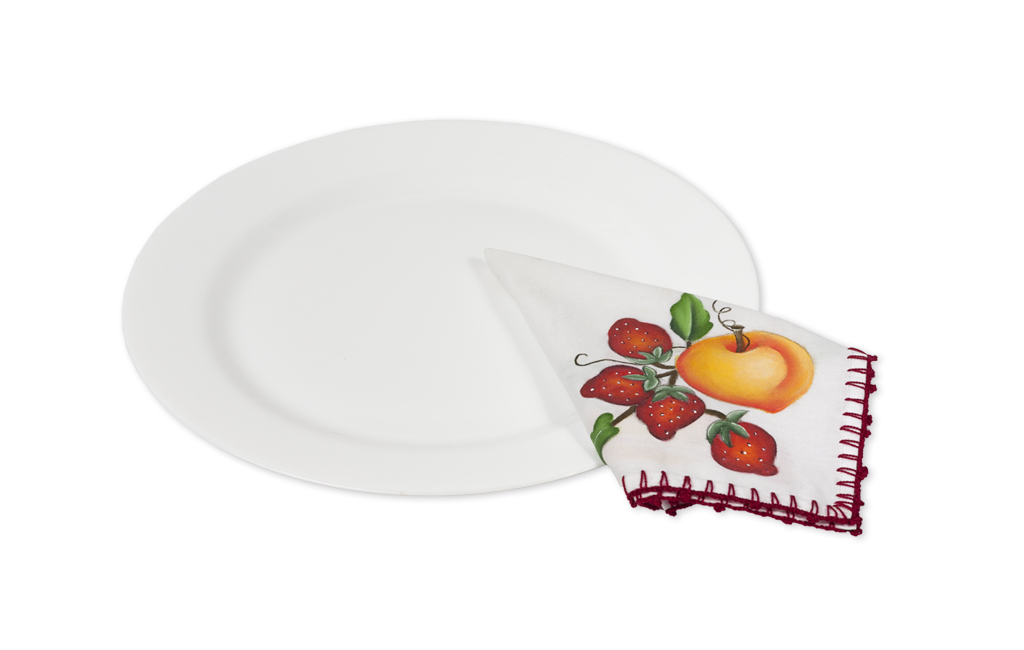 Con bordado en hilo perlado, lleva en las cuatro esquinas un detalle pintado de durazno y fresas. Ideal para darle un punto de color a tu mesa.